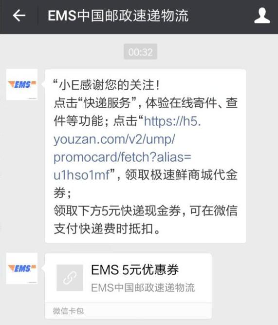 中国邮政EMS领5元寄件券