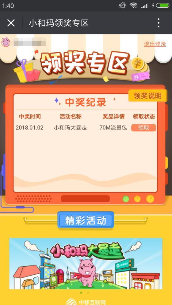 进入微信,点右上角+,点 添加朋友,公众号,搜索 小和玛,关注后,点 活动福利,暴走赢流量。点开始,阅读游戏规则,按上下箭头,控制 小和玛 避开障碍。技巧是连续按,让小和玛保持上或者下的姿态,超过50米后,点 送你70M,输入手机号和验证码,登录,点领取,15个工作日内到账,当月有效。