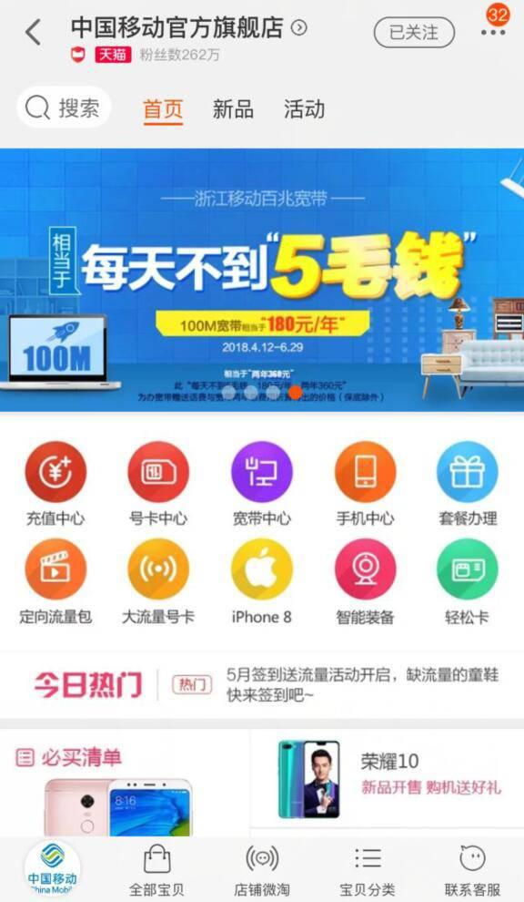 进入手机淘宝,搜索 中国移动官方旗舰店,进入店铺,今日热门,点 5月签到送流量活动开启,每累计签到7天,可以领取70M流量。中间断签,不影响累计。每个月最多可以领取3次70M流量,共210M流量。