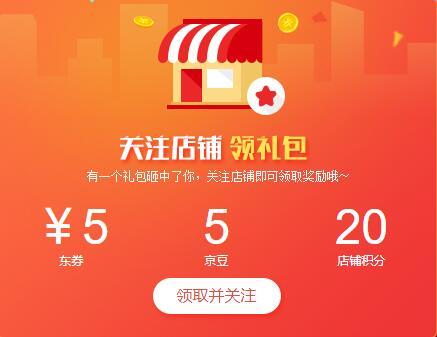电脑点链接,登录京东,关注店铺,可以获得指定关注礼包,包括京豆,东券或店铺积分。