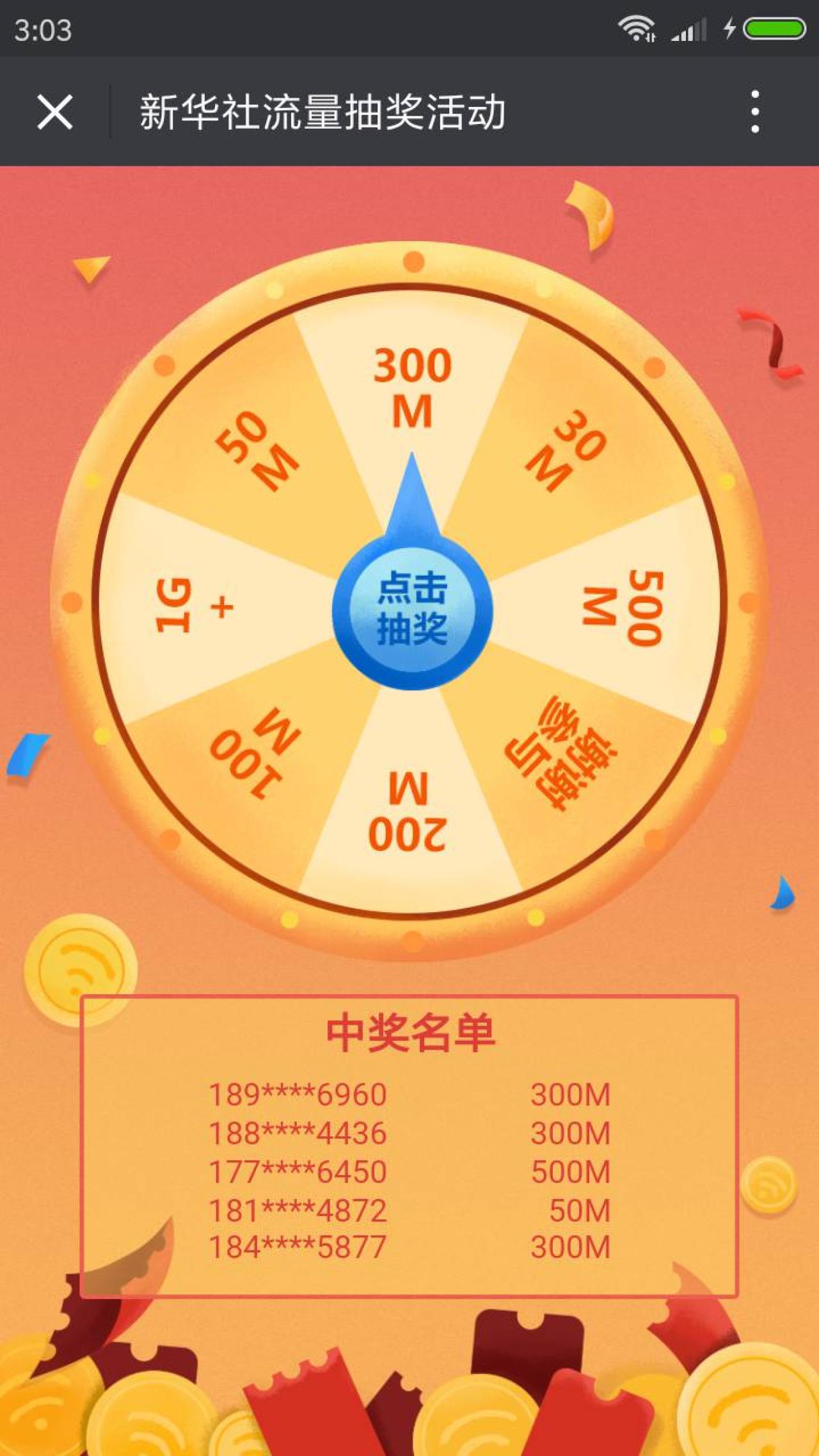 移动/电信/联通均可参与,部分新号段暂不支持。进入微信,点右上角+,添加朋友,公众号,搜索 新华社。关注后,点 领取流量,点 转发抽奖,点右上角,分享活动给朋友或朋友圈后,输入手机号,点击抽奖,每天越早参与,几率越大,奖品为30M到1G流量,抽中后,两日到账。未抽中,请明天早点继续!