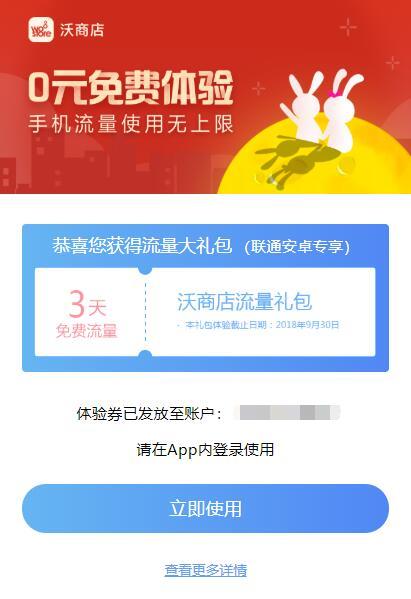 联通用户点第一个链接,输入手机号和验证码,领取3天流量免费体验券。然后,点第二个链接,下载 沃商店APP,安装后,用手机号登录,点我的,我的卡券,激活体验券。注意:请在沃商店 设置免流应用并开启流量开关,保持 沃商店 在后台运行。激活后3天内,设置的免流应用的流量全免。