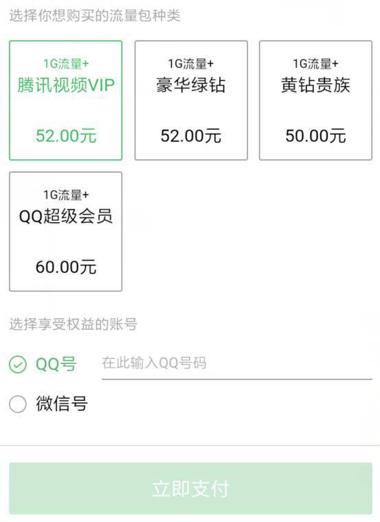 微信充流量+腾讯视频VIP/豪华绿钻/豪华黄钻/QQ超级会员优惠