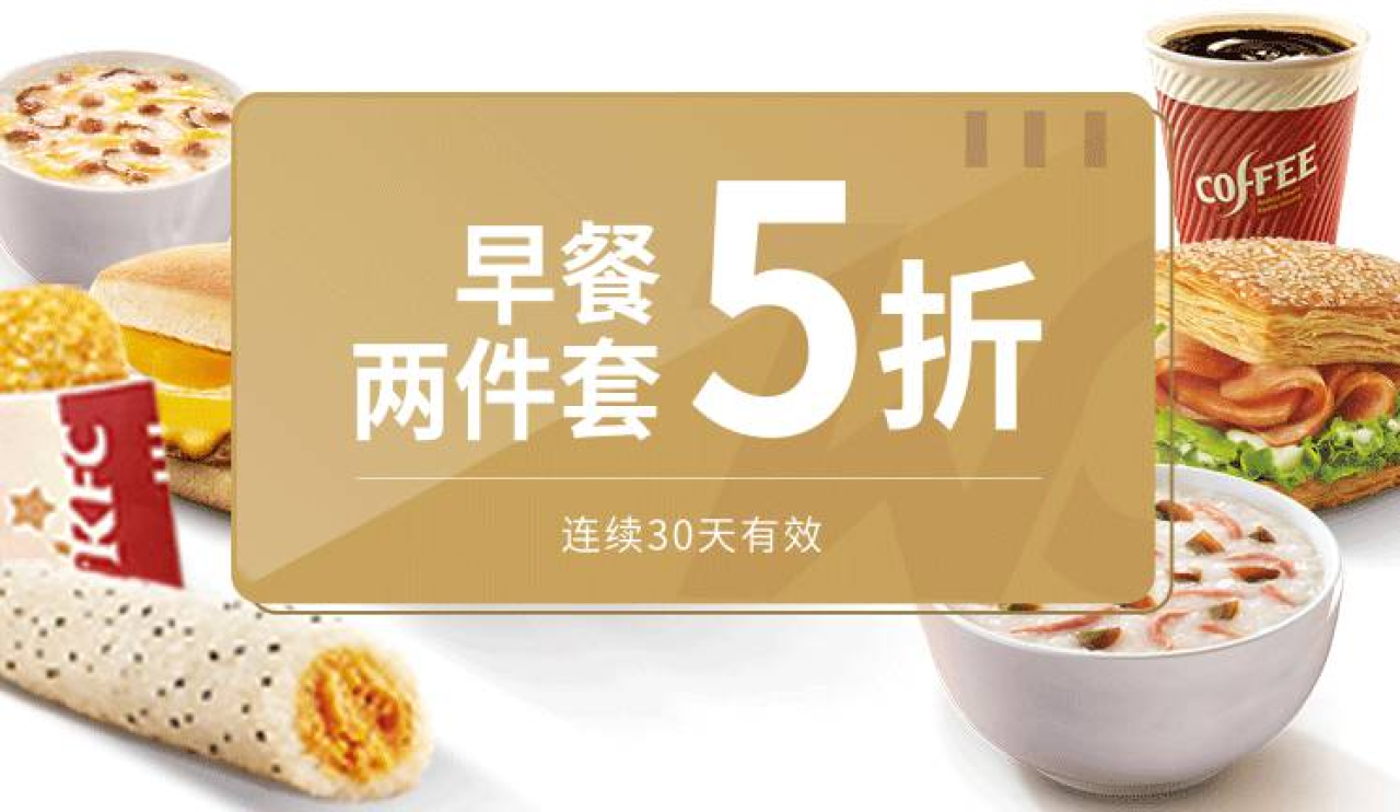 点链接,登陆肯德基账号,可以50元购买KFC早餐两件套5折卡,购买后,下载肯德基APP或者进入肯德基网站(第二个链接),在我的卡包中,点 超级早餐月卡,请门店扫条形码即可。一个月有效期,每天在KFC,购买24款早餐两件套中任意一款,使用本卡可获得原价5折优惠,适合经常在KFC吃早餐的朋友哦!