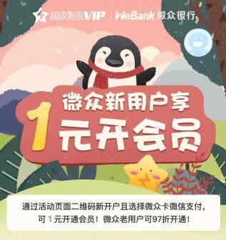 截屏本页面(带上二维码),进入微信,点右上角+,扫一扫,点右上角,从相册选取二维码,选择刚才的截屏。微众银行新用户按照活动页面上的步骤,开通微众银行卡,并添加到微信支付。使用微信支付,微众银行卡付款,可1元开通腾讯超级影视VIP一个月。绑过卡的用户,可97折开通超级影视VIP。