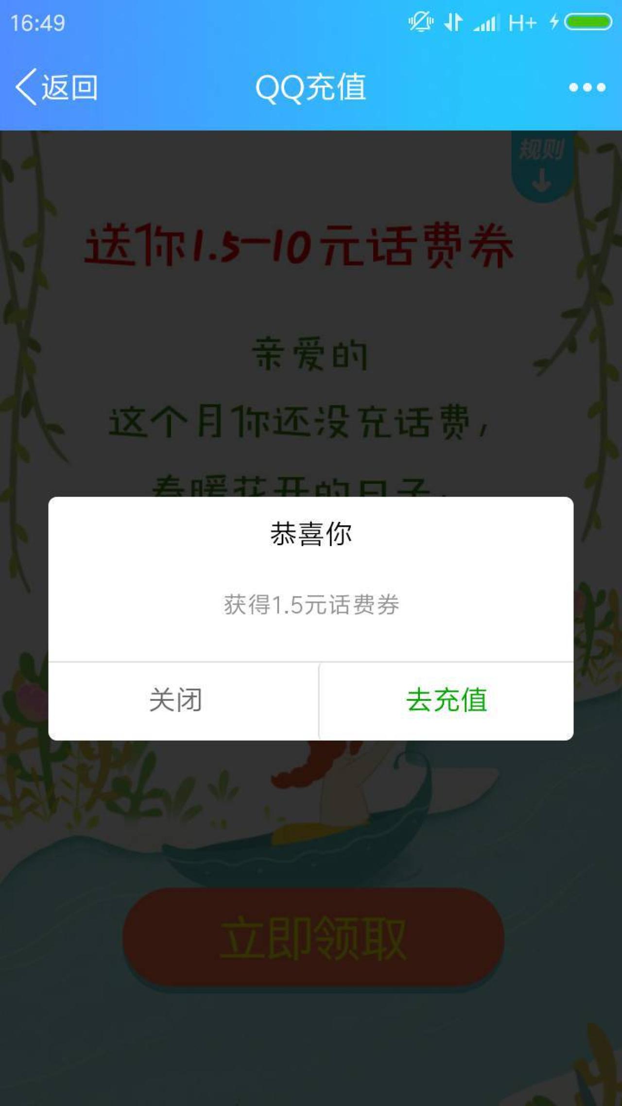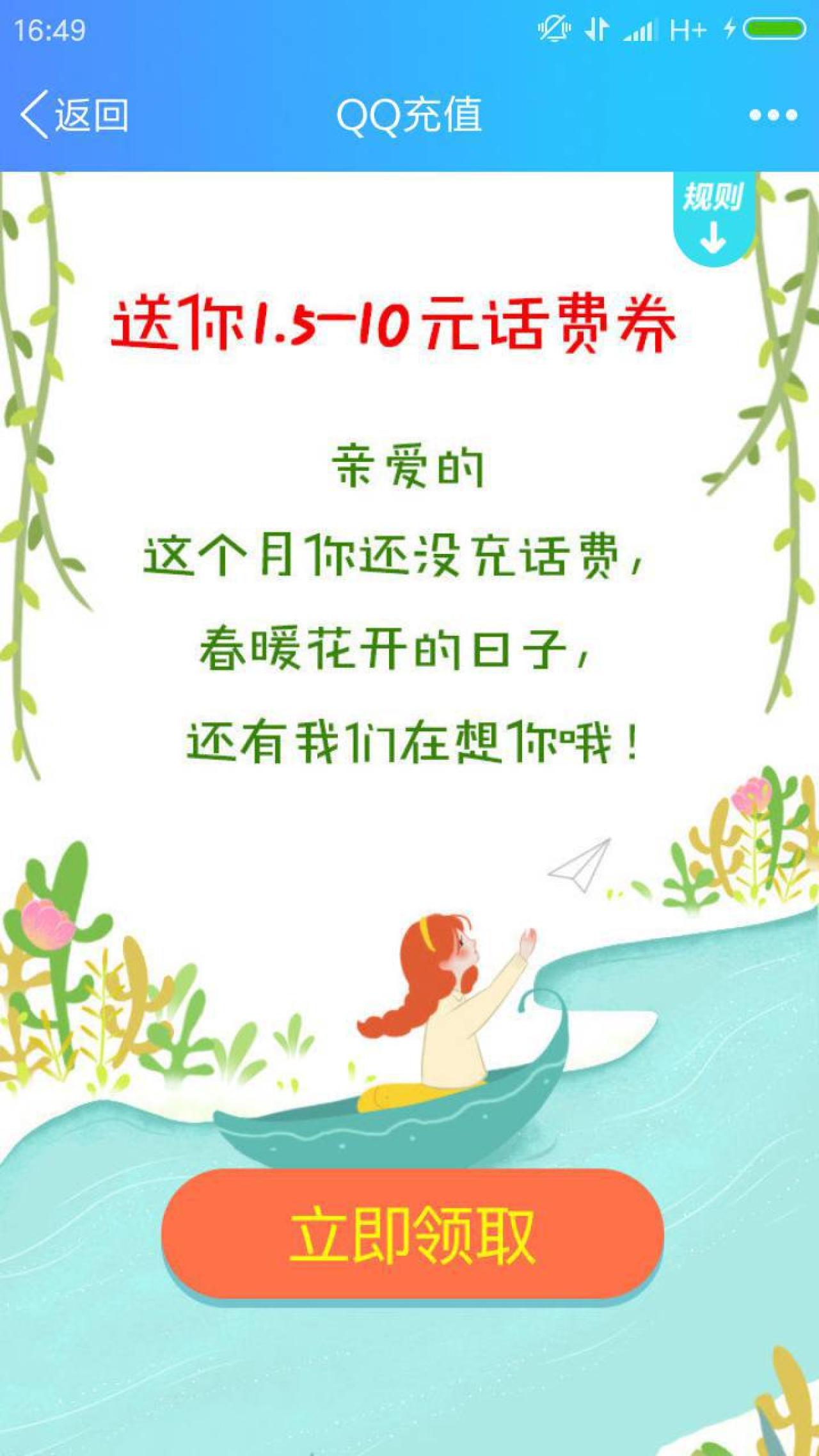 QQ充值1.5-10元话费券 满10元可用 限参与资格