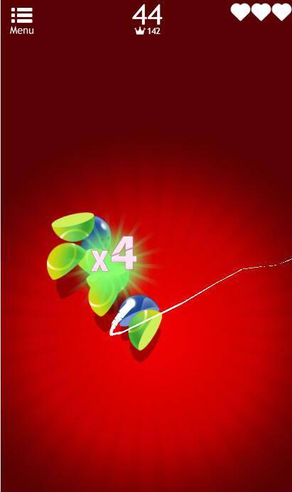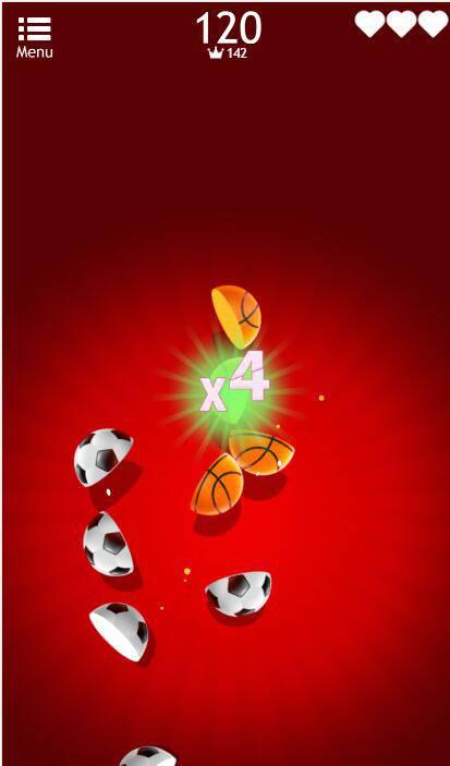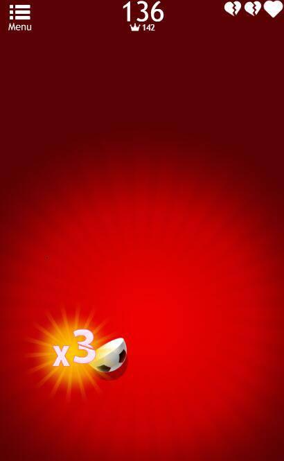 点链接,切足球,开始游戏,滑动屏幕,切物体,不要切到炸弹。有水果没被切到,会减一个♥,每人三颗♥。如果♥减完了,或者切到炸弹,则游戏结束。