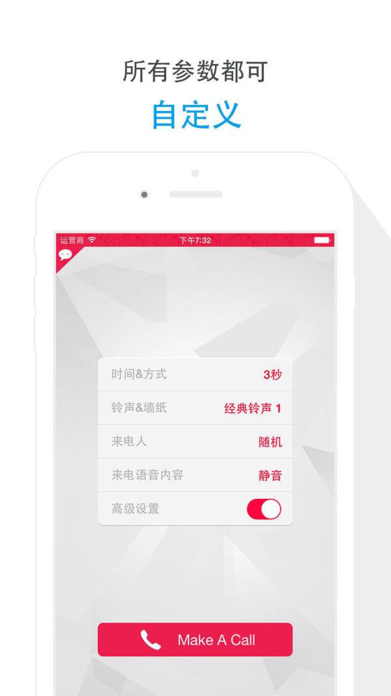 苹果用户点链接,进入AppStore,免费获取假装来电APP(原价6元),可设置在多长时间后来电话,铃声,来电人,甚至来电内容都可自定义,是装酷和应付尴尬场合的神奇哦!