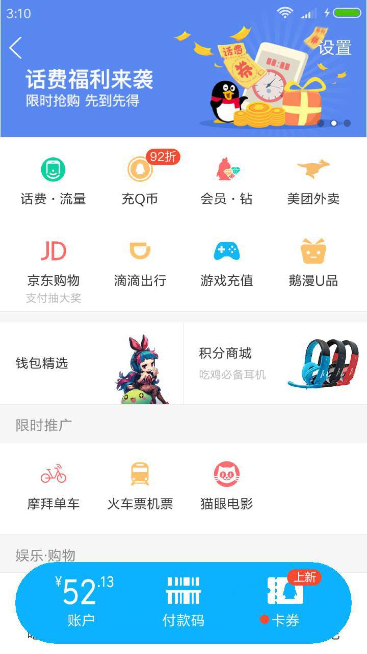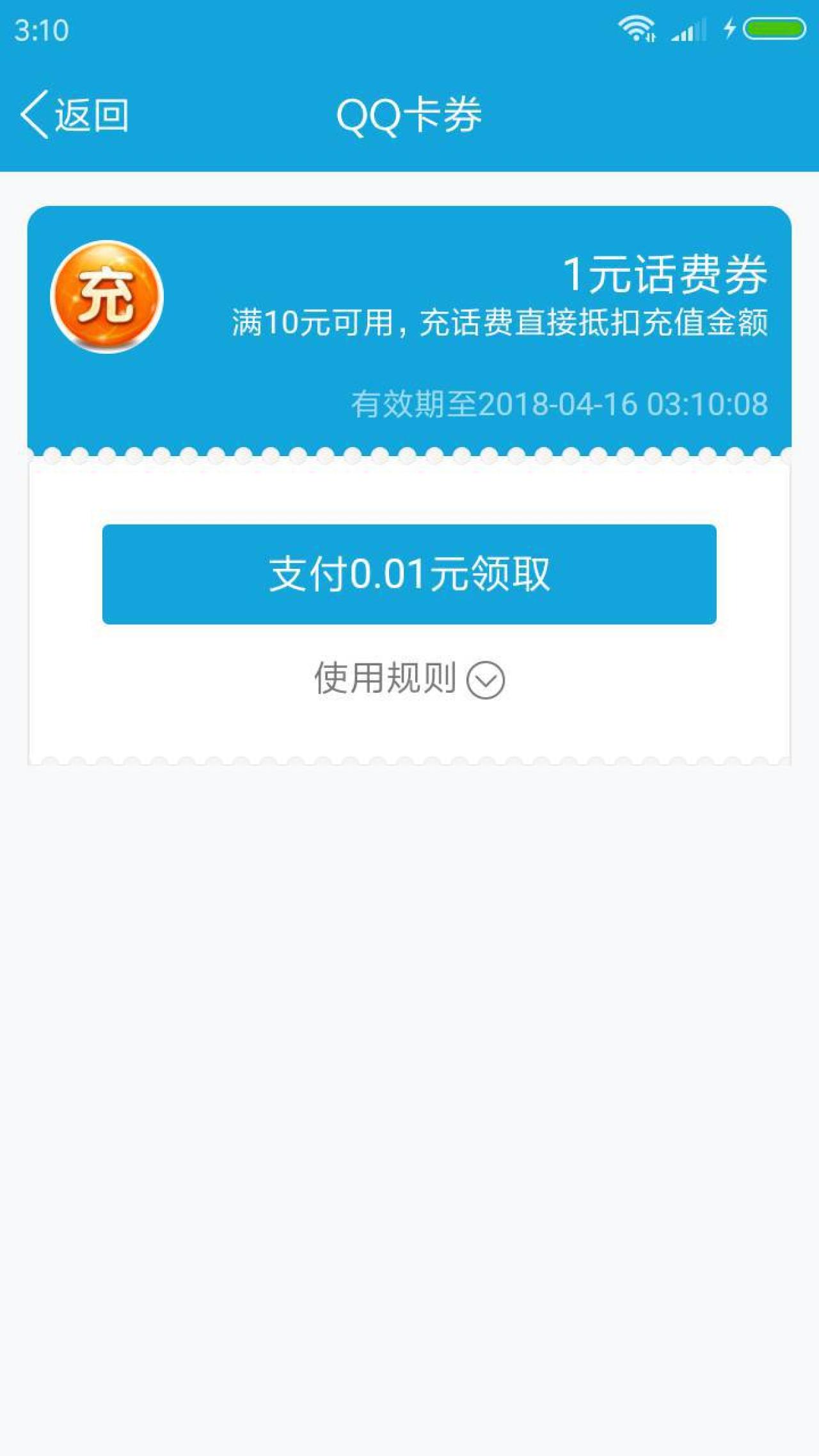 QQ钱包话费券 1元