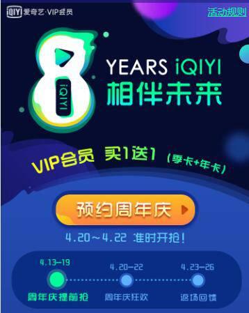 点链接,爱奇艺钻石会员年卡5折,网球会员年卡5折,爱奇艺学生卡月卡5折。下拉,可领取爱奇艺电影6元代金券。点底部 周年红包免费送,可领取6个红包,自己可用一个,其它需分享给好友。红包中含爱奇艺VIP天数或爱奇艺VIP买一送一卡。当6个红包全部被领取,分享者可获得3天爱奇艺VIP奖励。