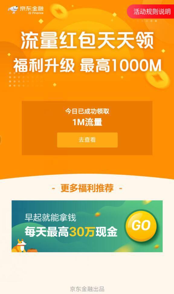 点链接,开红包,登录京东,领最低1M流量,点 去看看,进入京东流量加油站,满150M,可提取到手机。电信,联通,移动三网通用。活动期间,每天领取哦!