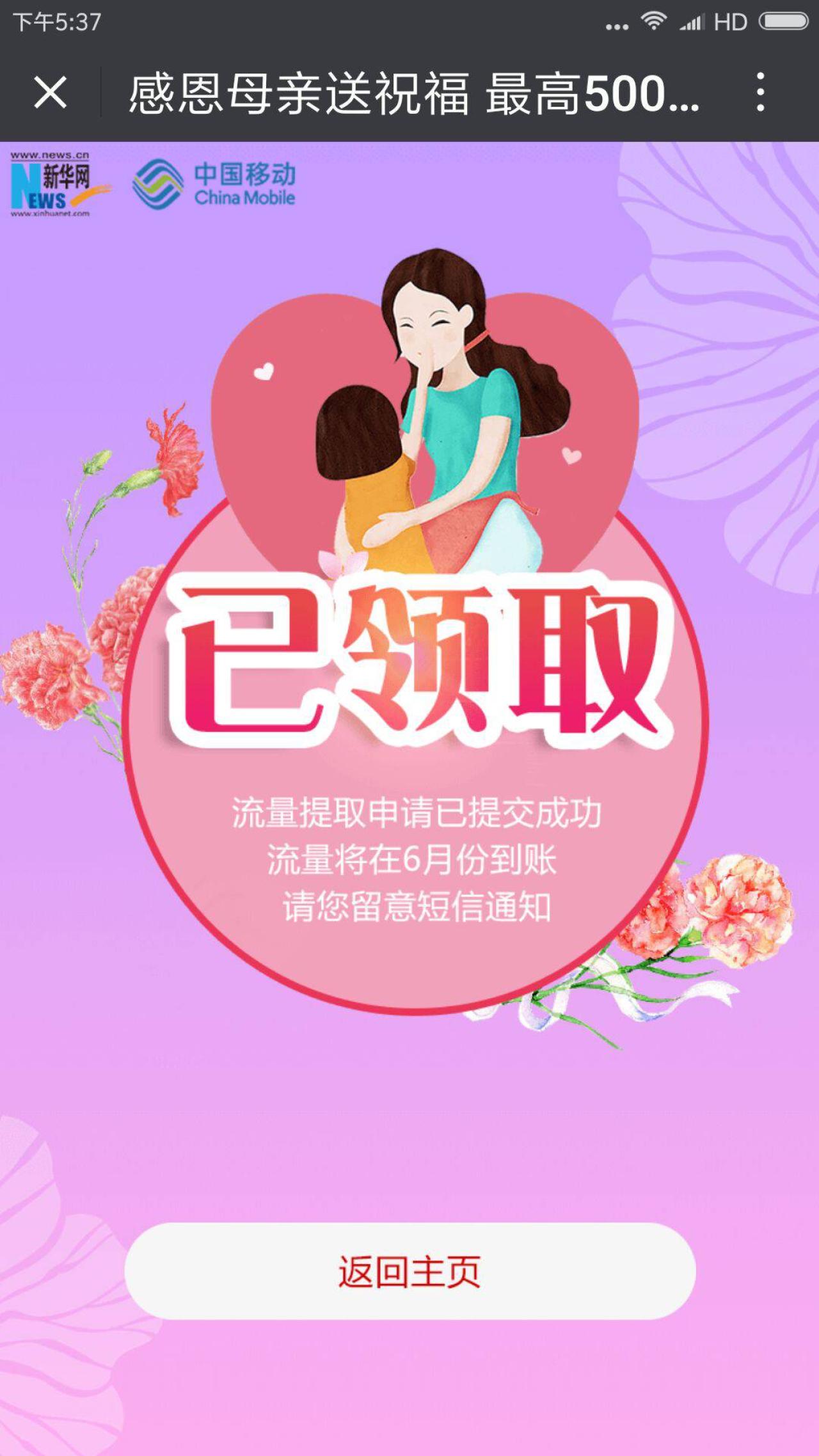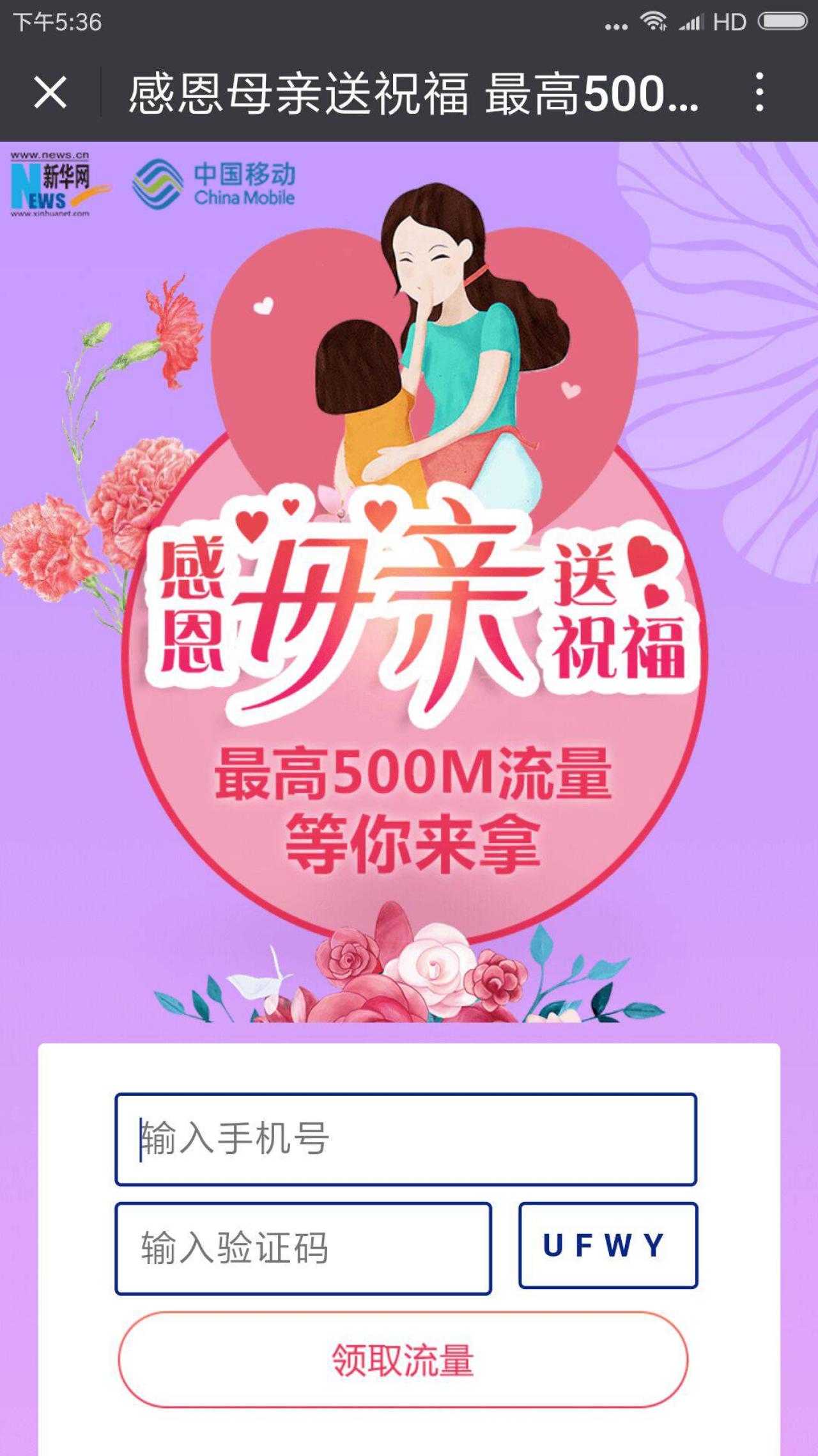 移动用户进入微信,点右上角+,添加朋友,公众号,搜索 新华网 ,关注后,点右下角领取流量,输手机号和验证码,领取流泪了,可领取500M流量,下个月到账。