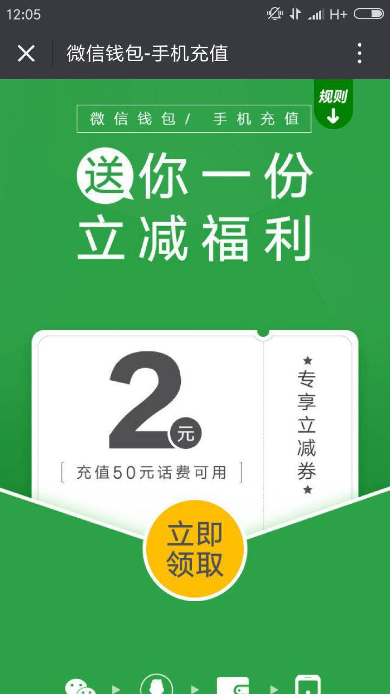 微信充话费 满50减2元