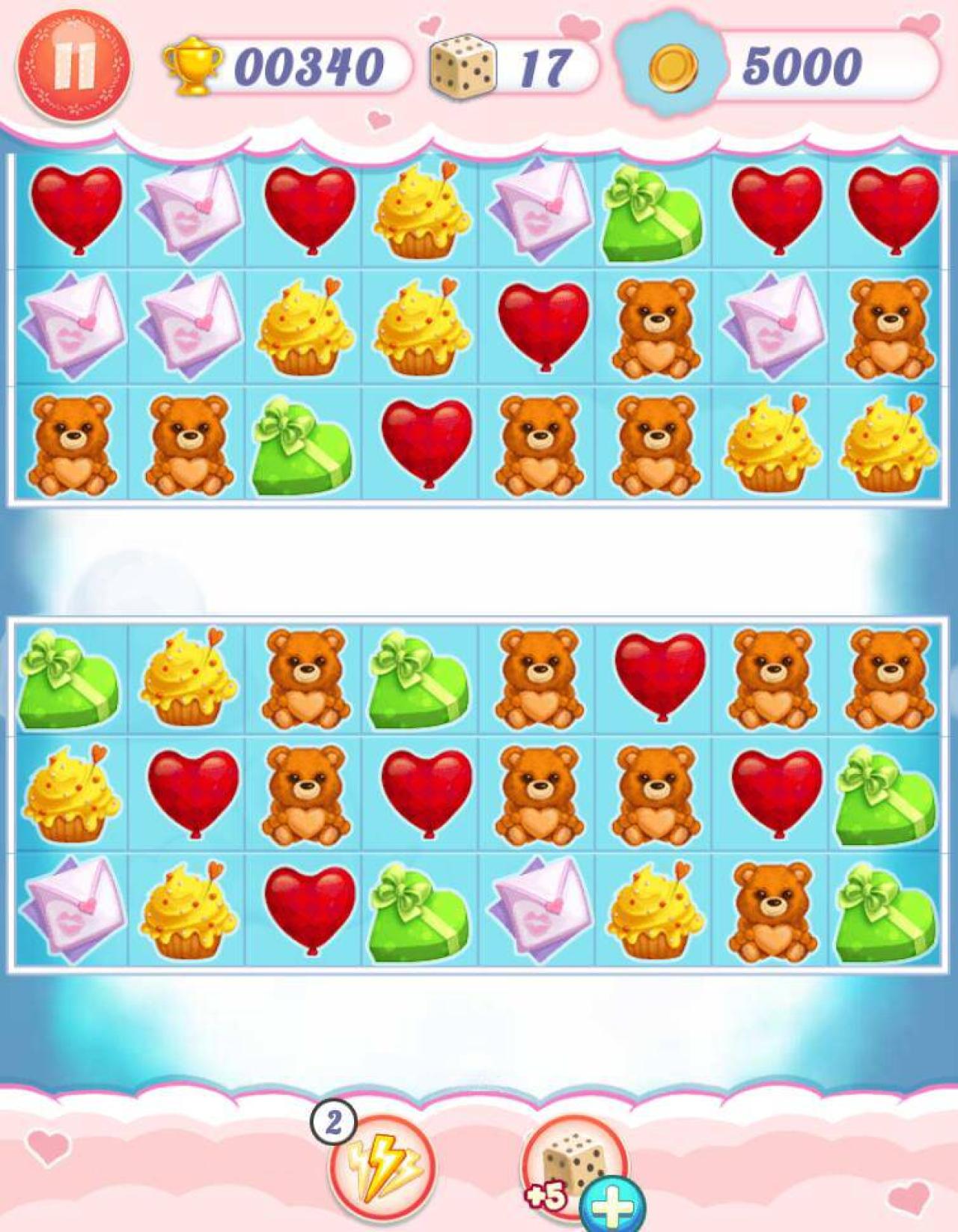 点链接开始游戏,交换物品糖果,消除连续3个及以上相同糖果,底部为道具,可用钻石购买。达到右上角指定分数过关。