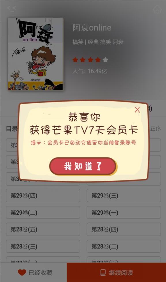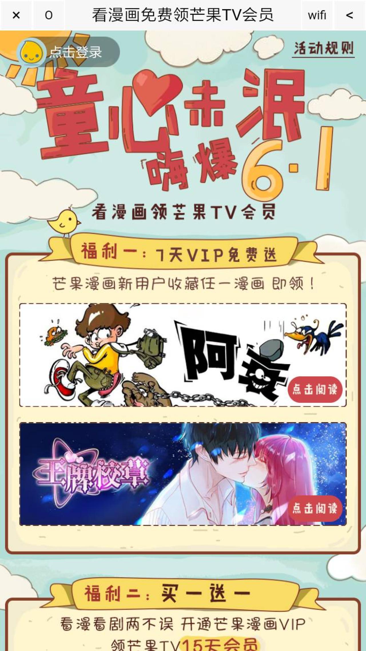点链接,点击阅读,点左下角的 加入收藏,登录 芒果TV账号,返回后,再点 加入收藏,可领取 芒果TV7天VIP会员卡,PC端和移动端通用哦!