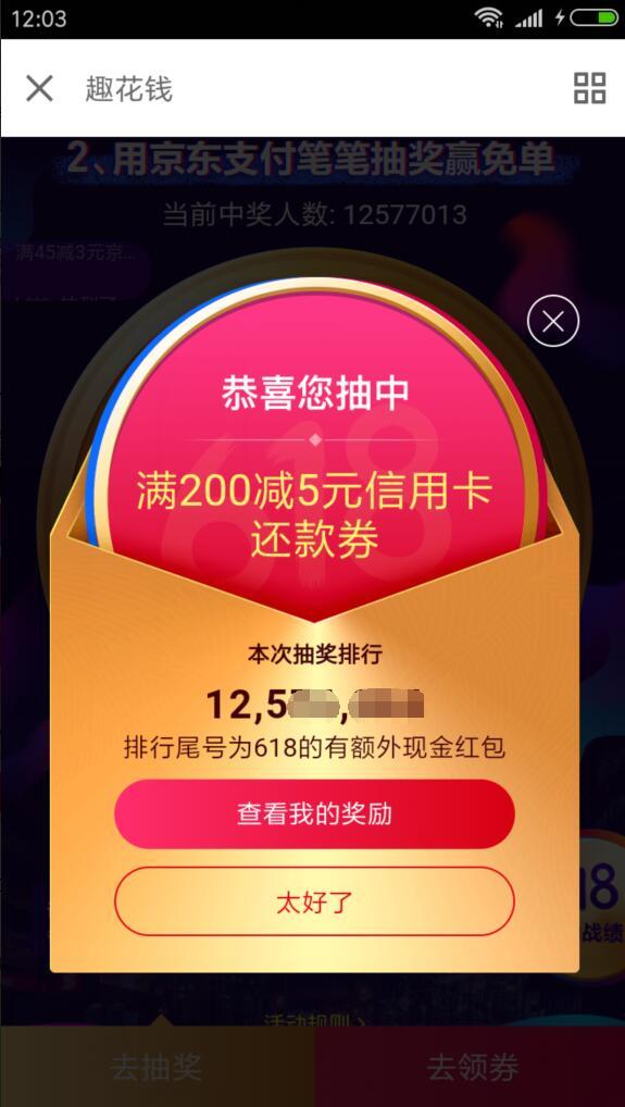 进入京东金融APP,点右上角618,点底部 去抽奖,可转盘,活动期间,每天可免费抽一次,分享再抽一次,使用京东支付消费可再抽一次(最多3次),小希中了0.08元小金库红包,到账京东小金库,可提现。