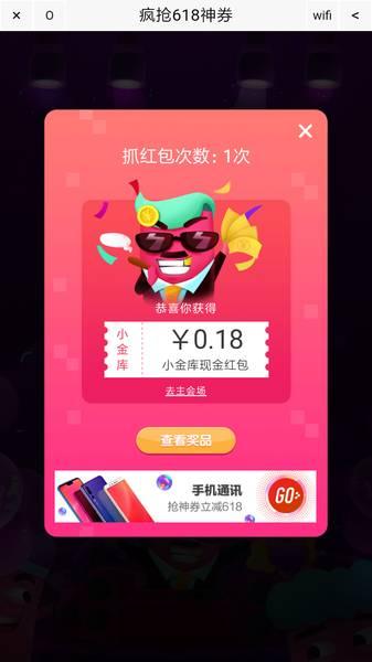 点链接,点开始游戏,登录京东,点屏幕出现的红包和金币,有机会抽取京东小金库现金红包和各品类奖券,优惠券,最高为618元支付券。活动期间,每人每天有3次抽奖机会。小希抽了3次,中了0.18元现金红包,到账京东小金库,可提现。