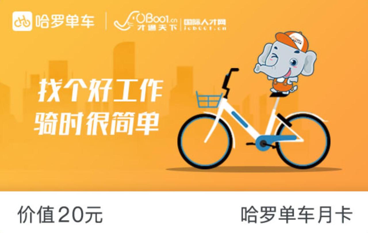 点链接,立即领取,输入手机号,立即领取,领卡前无骑行卡的新用户,可免费领取30天骑行卡,成功后可在“哈罗单车APP”→“我的钱包”中查看,同一用户限领取一次。有效期内不限骑行次数,单次骑行前2小时免费,超出时间按照正常计费规则收费。本月卡由哈罗单车和国际人才网联合提供。