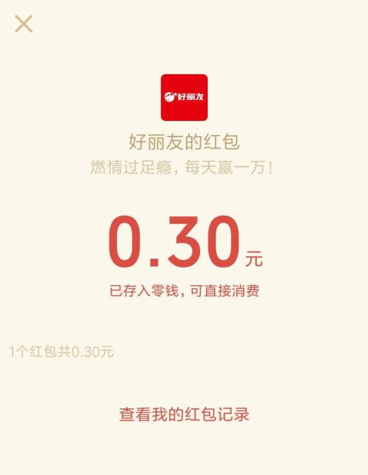 截屏下方二维码,进入微信,点右上角扫一扫,再点右上角,从相册上传二维码,上传截屏,进入活动页面,点Start,向上滑动,将好丽友薯片和薯条射进嘴形球门里,得分超过60分,即可得到微信拼手气现金红包一个,小希得到了0.3元。到账微信零用钱,可提现。每人每天都可以参与一次。