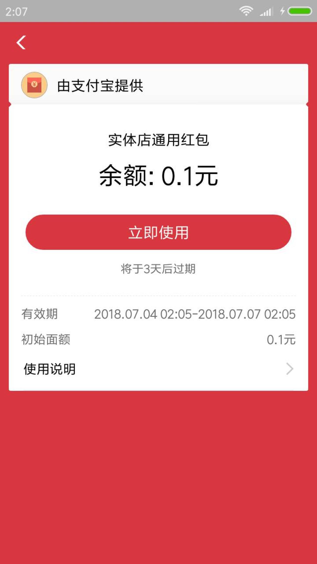 截屏下面的二维码,进入支付宝,点扫一扫,点右上角相册,上传截屏,可领取0.1元支付宝到店红包,自领取之日起3天有效。每天可以领取一次,用完领取下一个,不影响其它活动和渠道的到店红包的领取。多个支付宝到店红包可以叠加使用,最多不超过10个。