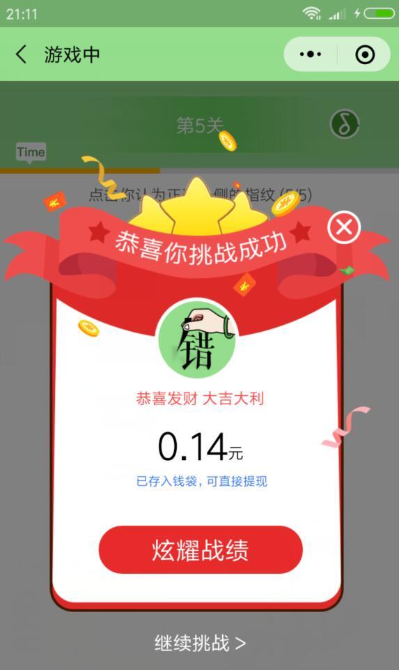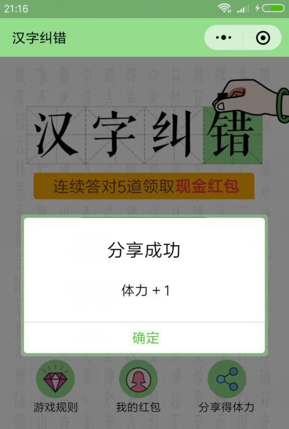 进入微信,点右上角,添加朋友,公众号,搜索 小乐游,关注后,点热门游戏,汉字纠错,点开始挑战,选正确成语,很简单,挑战成功,可得现金红包。返回,点分享得体力,分享到微信群,可在获得一次挑战机会。完成3次挑战,积累0.3元以上提现,将提现码到粘贴到小乐游公众号,回复可到账。