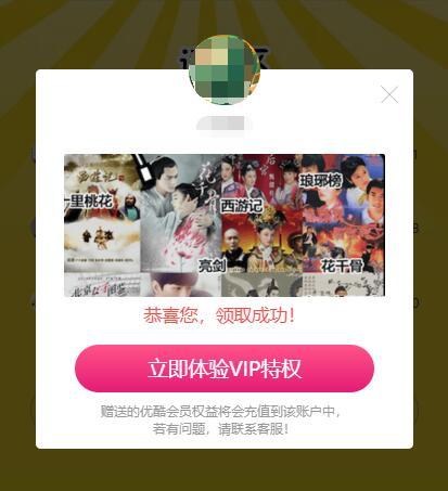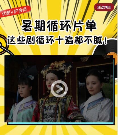 点链接,参加优酷《暑期无限循环片库》活动,下拉到页面中部,点领取,登录优酷,即可领取优酷《听歌猜剧》小游戏3天体验特权:3天内,免费观看暑期必看片库中的VIP会员集数权益,不可以免广告,每个优酷账号可领取一次。包括《花千骨》《三生三世十里桃花》《楚乔传》等VIP剧集。