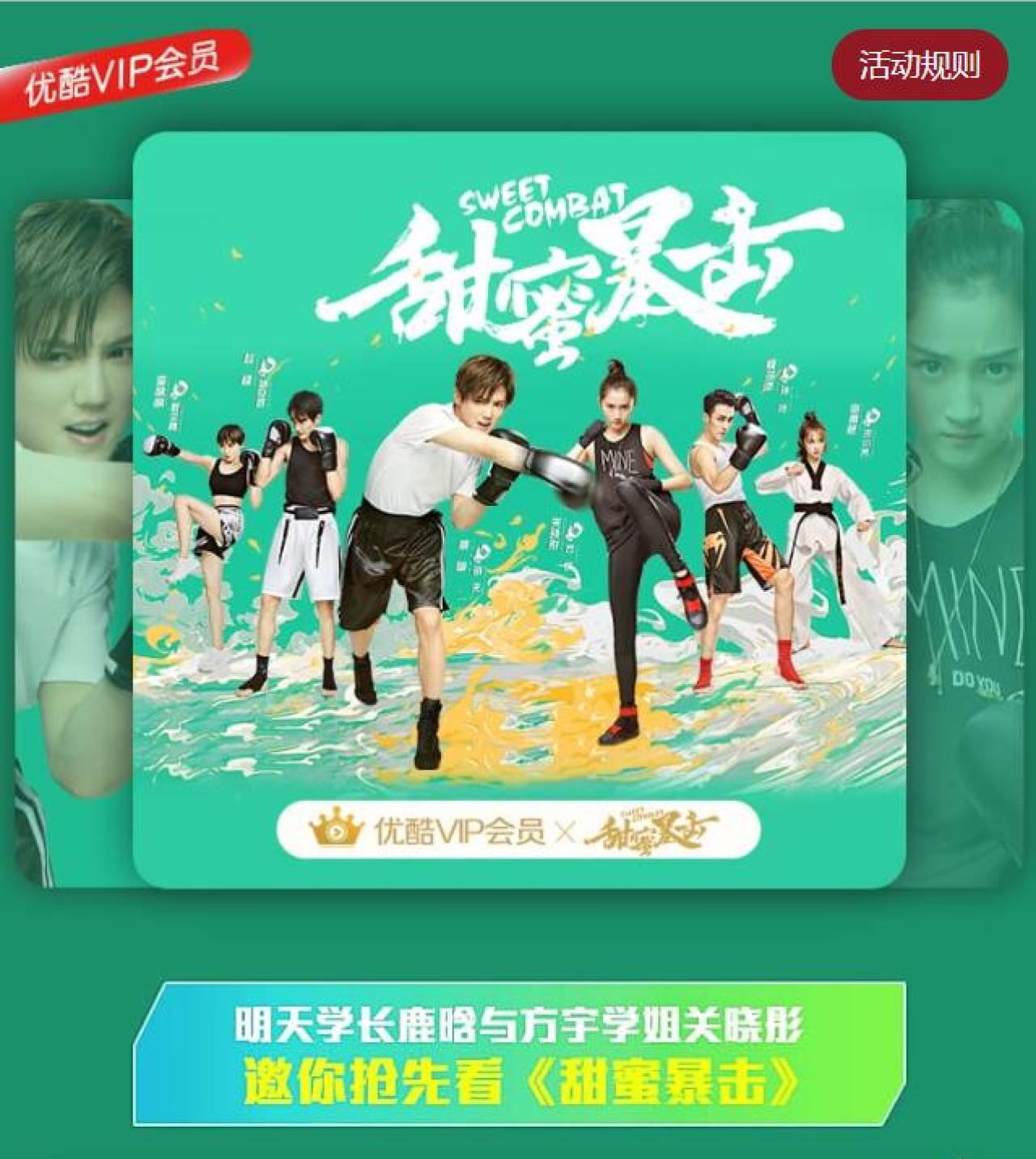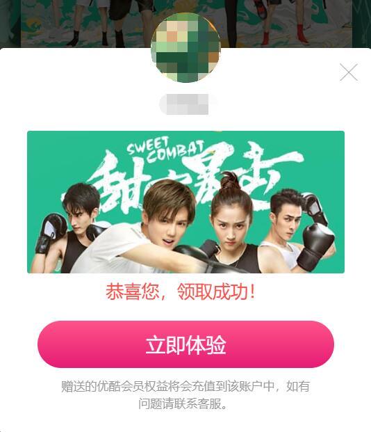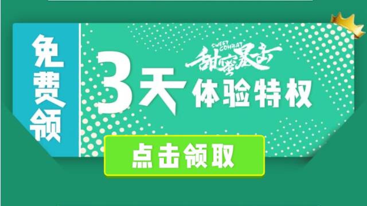点链接,下拉到页面中部,点免费领3天体验特权,可免费领取优酷《甜蜜暴击》3天体验特权:可享受为期3天的《甜蜜暴击》抢先看特权、《甜蜜暴击》单剧免广特权、《甜蜜暴击》单剧1080P特权。本权益适用于PC/手机/iPad端,不可用于tv端,且不与其他优惠活动同享。