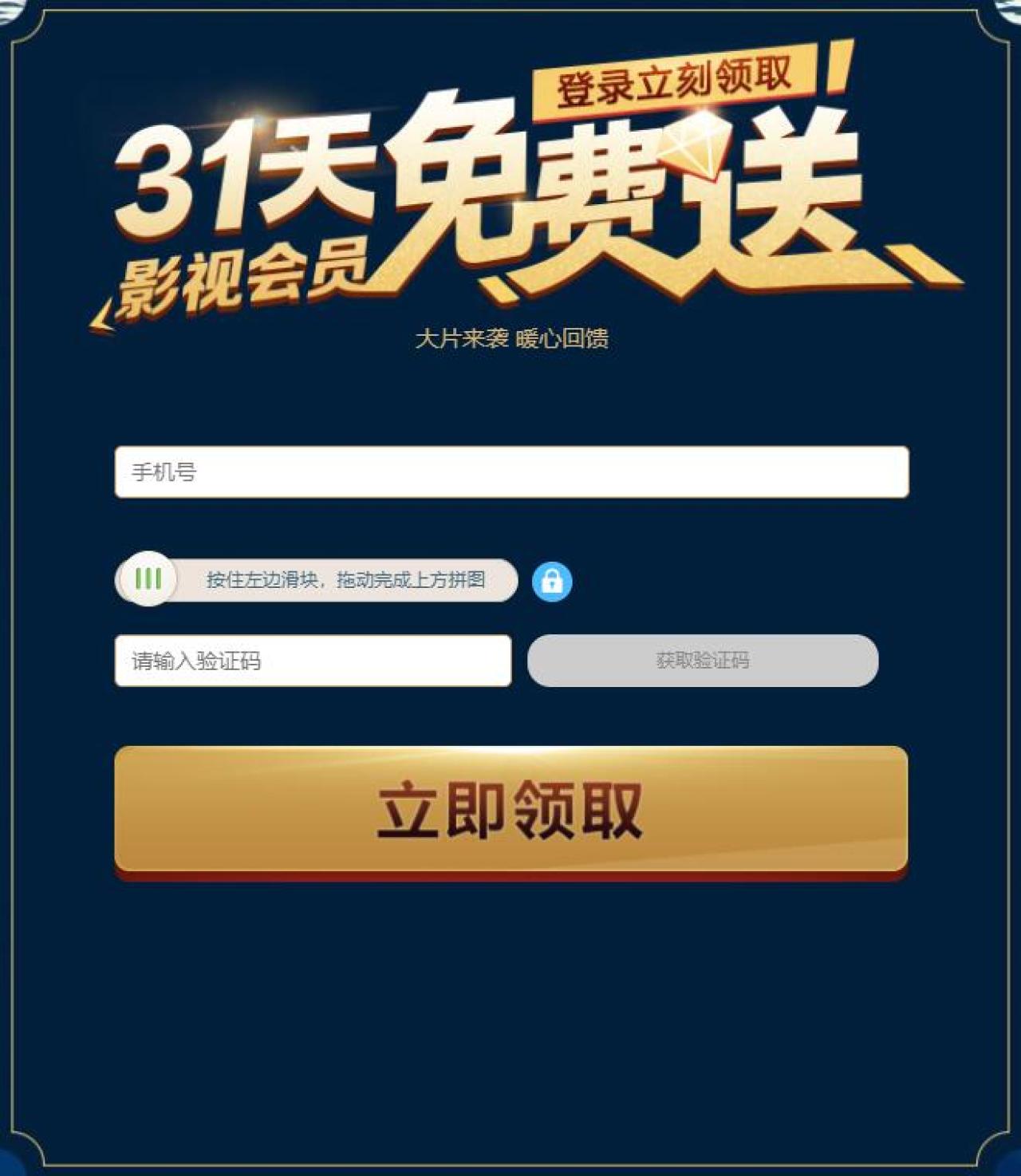 点链接,PPTV新用户输入手机号,滑动滑块,拖动完成上方拼图,输入验证码,点立即领取,可领取31天PPTV影视会员。注意:只限新用户参加,如果手机号已经注册了PPTV,会提示短信发送失败。享受观看影视剧免广告,1080P,观看《妈妈咪呀!》《勇敢者游戏》《猎粮人》和《至暗时刻》等会员专属电影。