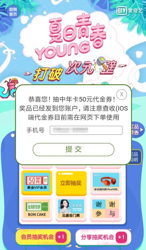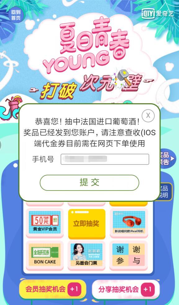 点链接,登录爱奇艺帐号,参加爱奇艺《夏日青春》活动,点击地图上的建筑,总共6个,每点一个,回答一个问题,答错了,可以点分享,再答一次。答对了,可以抽奖2次,会员额外1次。小希抽了18次,得到的都是代金券和需要30元运费的葡萄酒,小希还是觉得饮料好喝,大家可以试试运气。