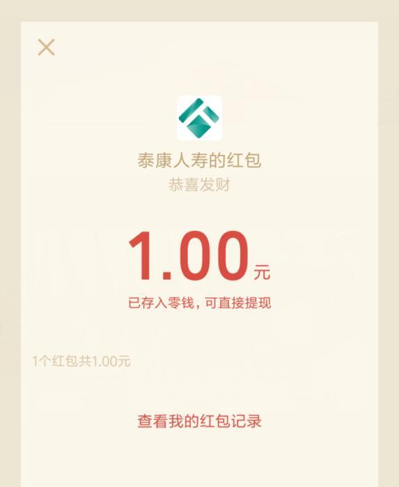 截屏二维码,进入微信,点右上角+,扫一扫,再点右上角,从相册上传二维码,上传截屏,进入泰康《法力无边 发展无限》百万红包等你抢活动!点查看参赛选手,为你喜欢的选手投票,点投票按钮后,有点慢请耐心等待,有机会领取红包,点领取,会收到红包推送消息。小希抽中了1元现金红包。
