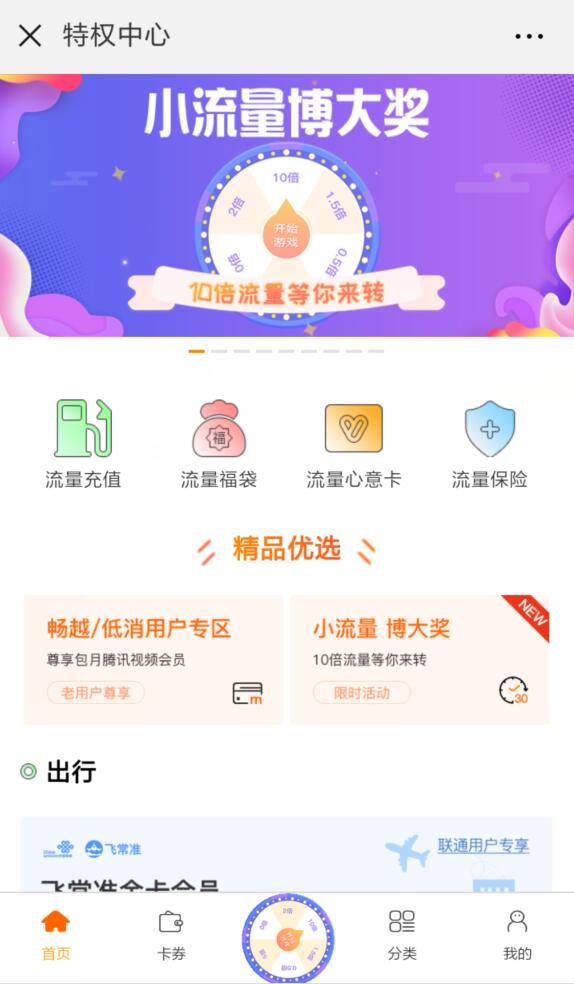 进入微信,点右上角+,添加朋友,公众号,搜索 联通特权中心,关注后,点底部 特权中心,点《小流量博大奖》,在底部选择要押的流量,每人每天可以免费抽奖一次,点分享再玩,可以再免费抽奖一次。如果抽中0倍,则押的流量消失,如果0.5倍,就乘以0.5,以此类推。小希抽了一次0.5,一次2倍。