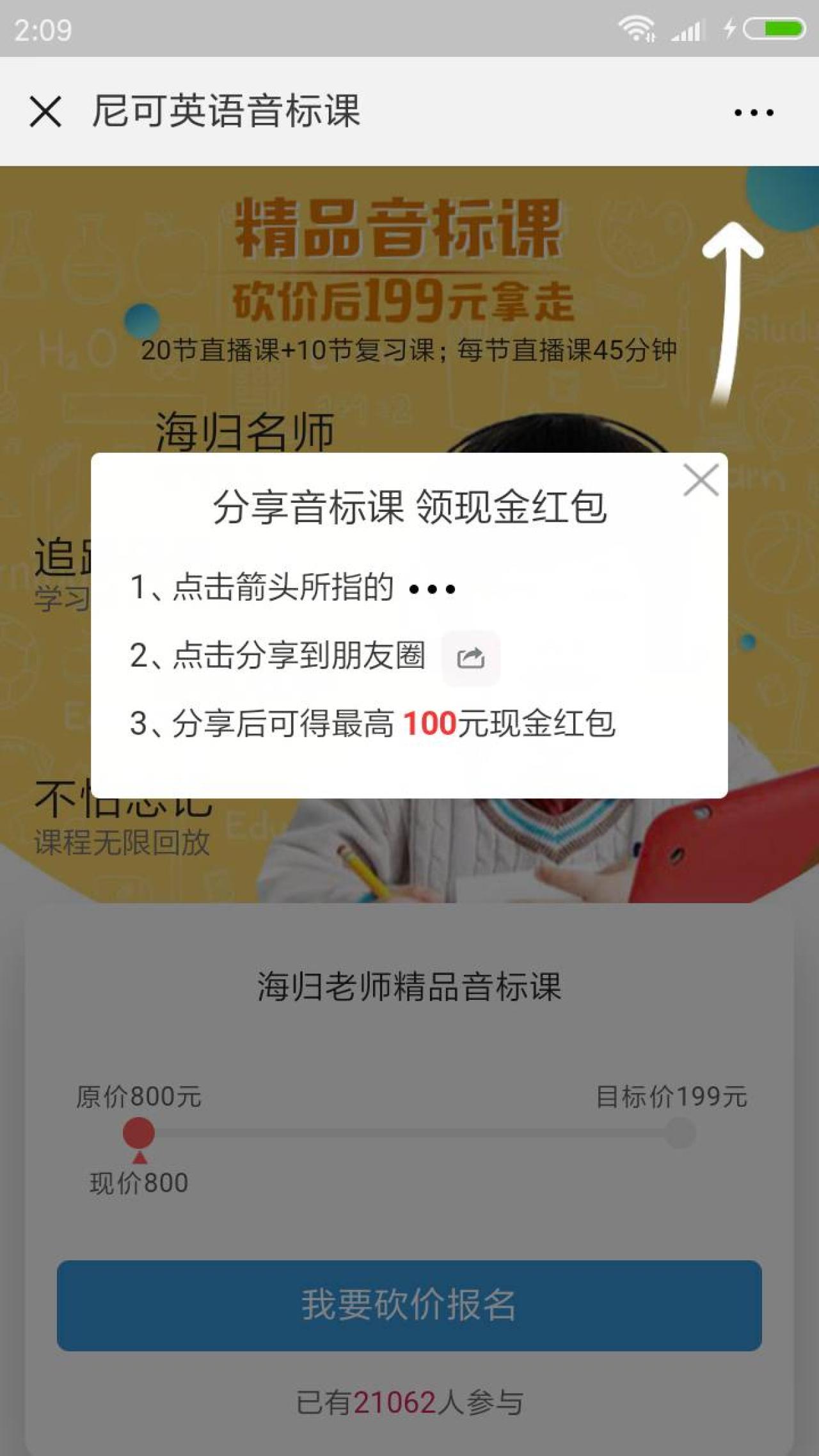 进入微信,点右上角+,添加朋友,公众号,搜索 尼可英语课堂,关注后,下拉点 全部消息,找到 分享音标课,赢100元红包!再点右上角…,分享到朋友圈,分享成功后,收到红包消息提示,