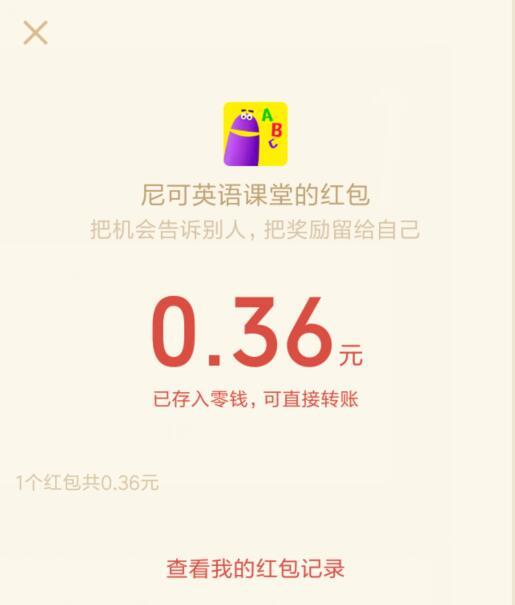 尼可英语课堂现金红包