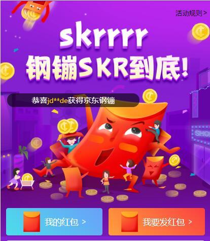 点链接,参加京东《Skrrrr》钢镚SKR到底!活动。点右下角的兑,按钮,登录京东,然后返回活动页面,下拉,可见6个项目,点每个项目的抢红包按钮,有机会获得0.01钢镚,小希得到了0.03钢镚和延保优惠券。在京东购物,选择钢镚支付时,1钢镚可抵1元现金,大家可以试试运气哦!
