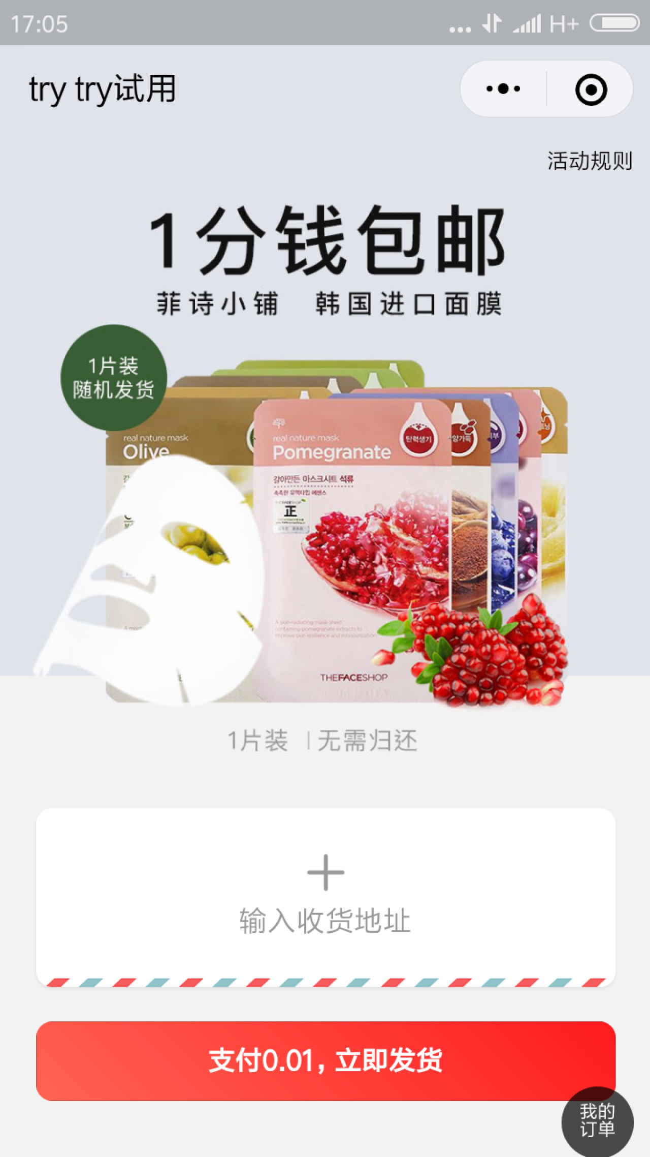trytry试用国庆节现金红包和免费面膜