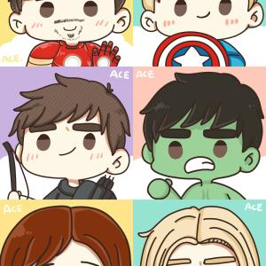 钢铁侠、美国队长、鹰眼、绿巨人、黑寡妇、雷神等《复仇者联盟2》Q版角色头像,画师炎小羽作品。