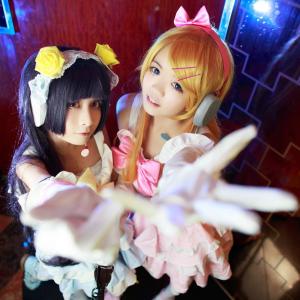 我的妹妹哪有这么可爱中激萌二人组,桃小陌扮演五更琉璃、大连二扮演高坂桐乃KTV激萌摆拍一组。